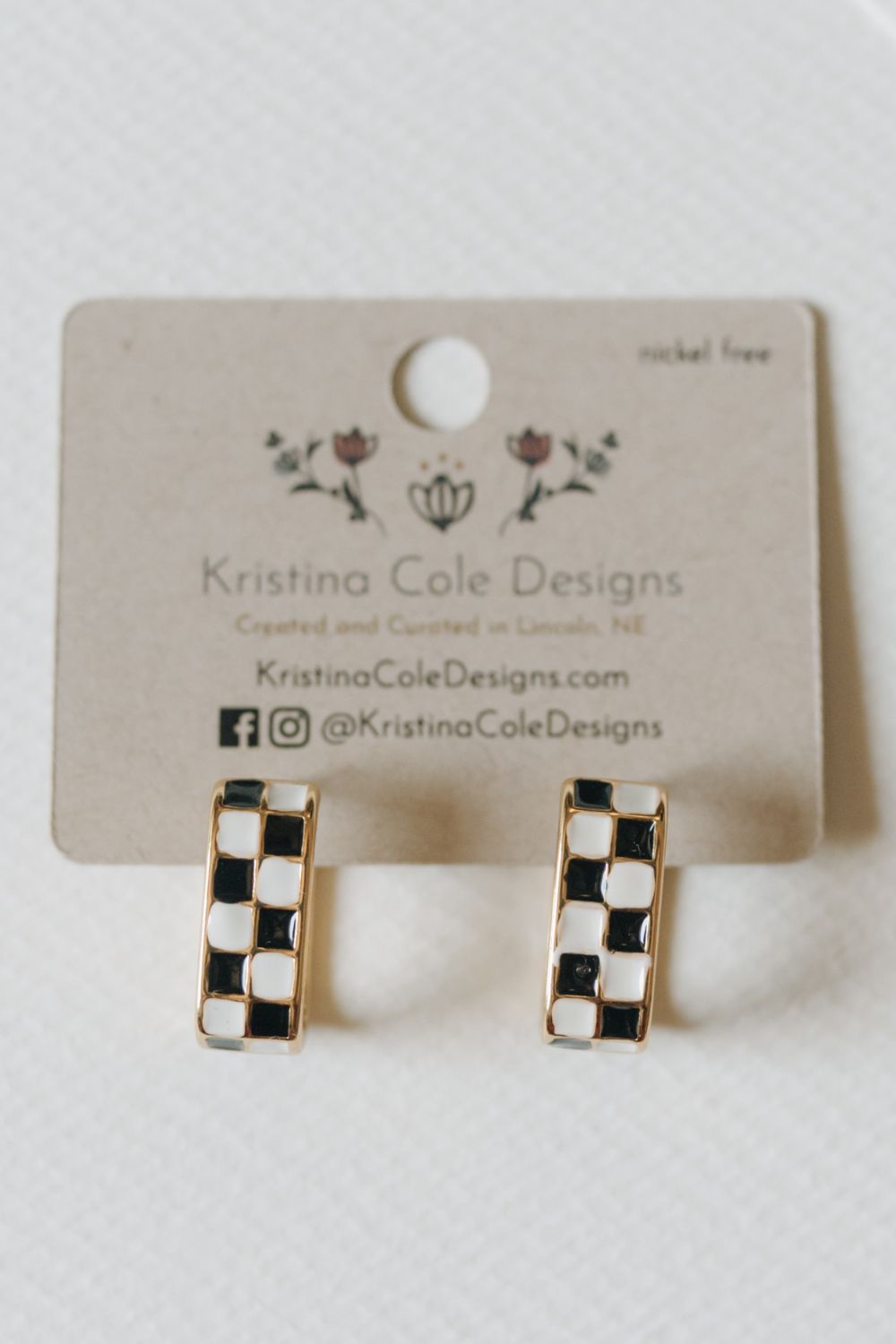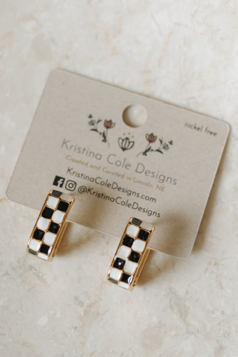 Modern U-hoops in bold black-and-white checks make a fresh, versatile statement — on or off the field.