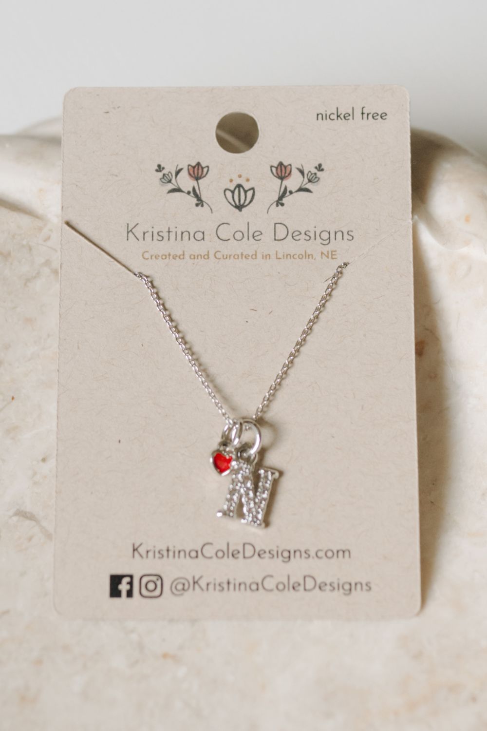 Nebraska Huskers Stone Initial Necklace - Silver