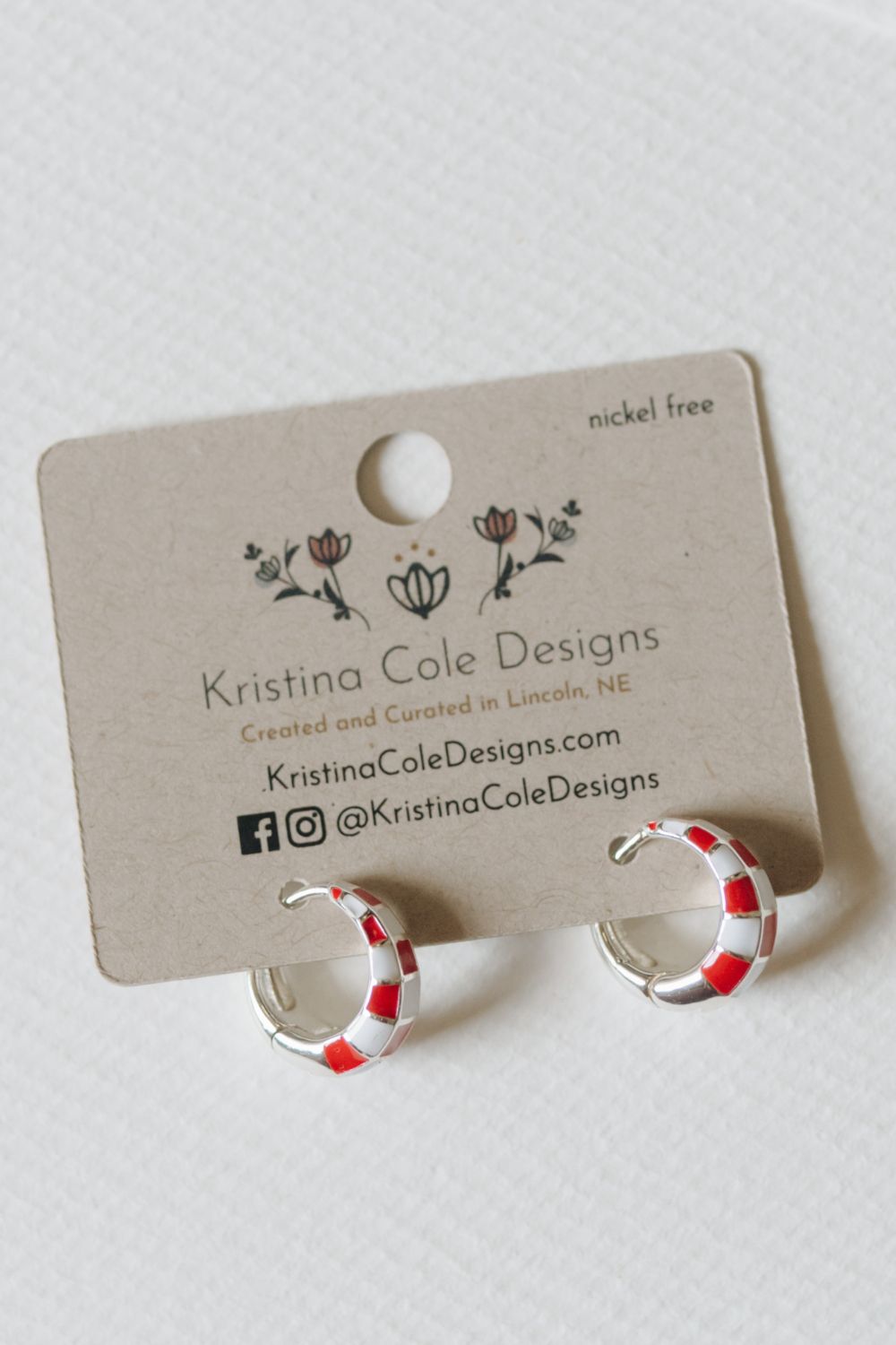 Red and White Checkered Enamel Hoops - Sliver