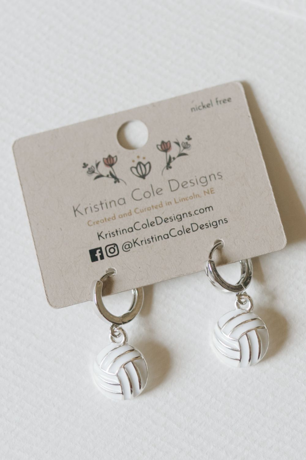 Sporty yet chic, these silver volleyball enamel huggies let you show love for the game.